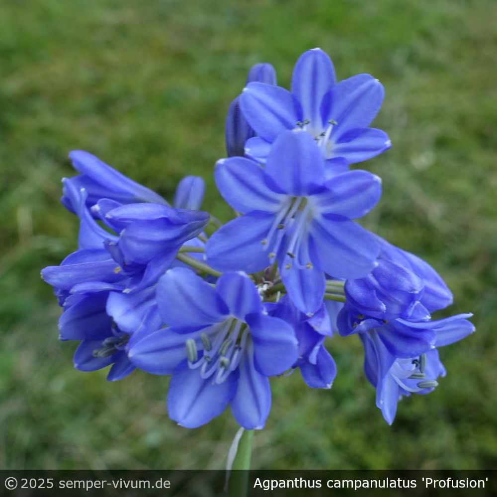 Eine altbewährte Sorte, die bereits seit 50 Jahren bekannt ist. Es handelt sich dabei um eine Selektion von Agapanthus campanulatus ssp. patens. Daher formt sie lockere Blütenstände an längeren, bis zu 100 cm langen Stielen. Sie erhalten diese Schmucklilie im 9 cm Vierkanttopf. Neu bei semper-vivum.de!