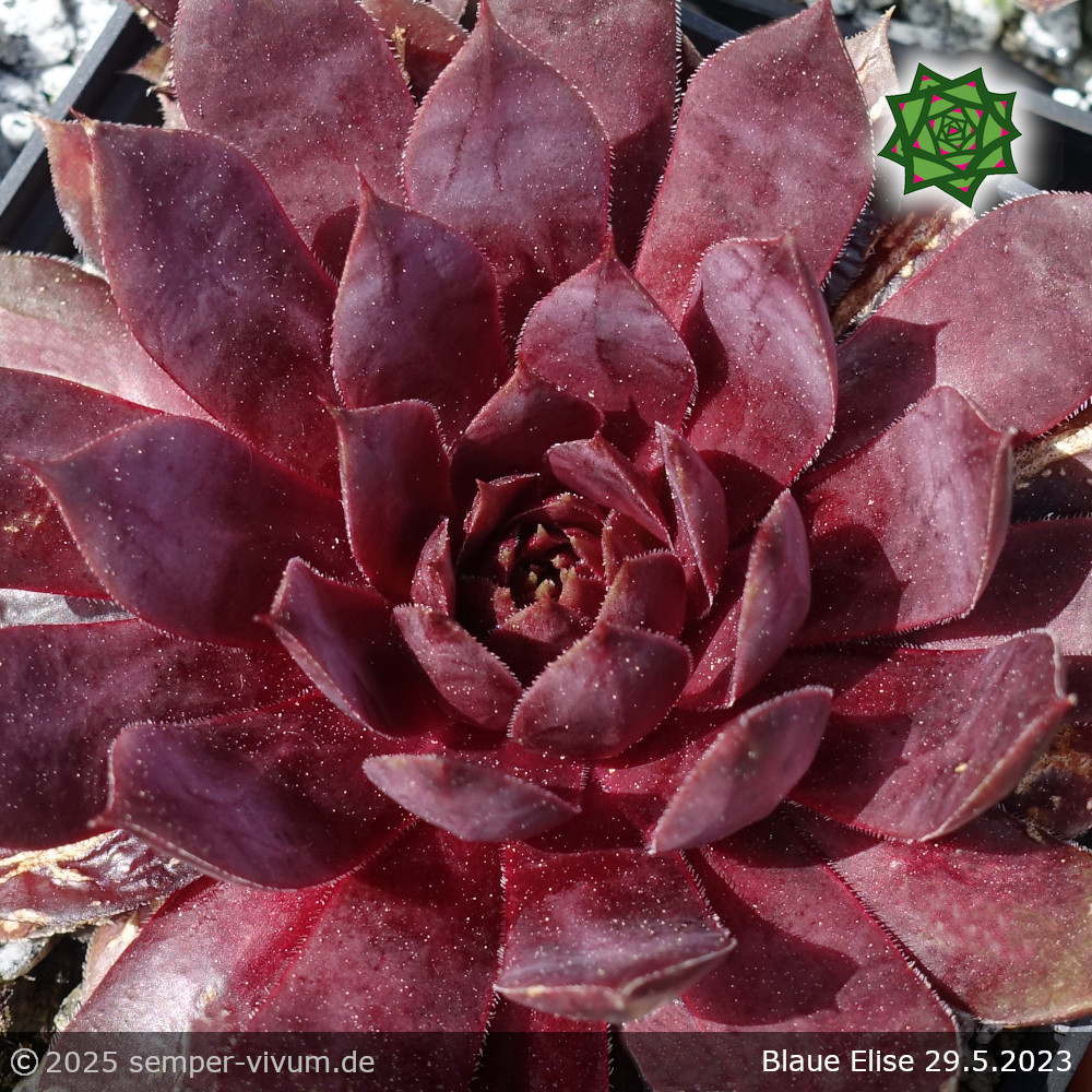 Ein prächtiger neuer Stern in purpurvioletten Farben, die zeitweise auch bläuliche Nuancen zeigen. Durch ihre schmalen Blätter, bildet sie fast sternförmige Rosetten von mittlerer Größe. Eine wüchsige und robuste Neuheit, ausgelesen aus vielen Sämlingen unserer beliebten Sorte 'Tintenblut'.