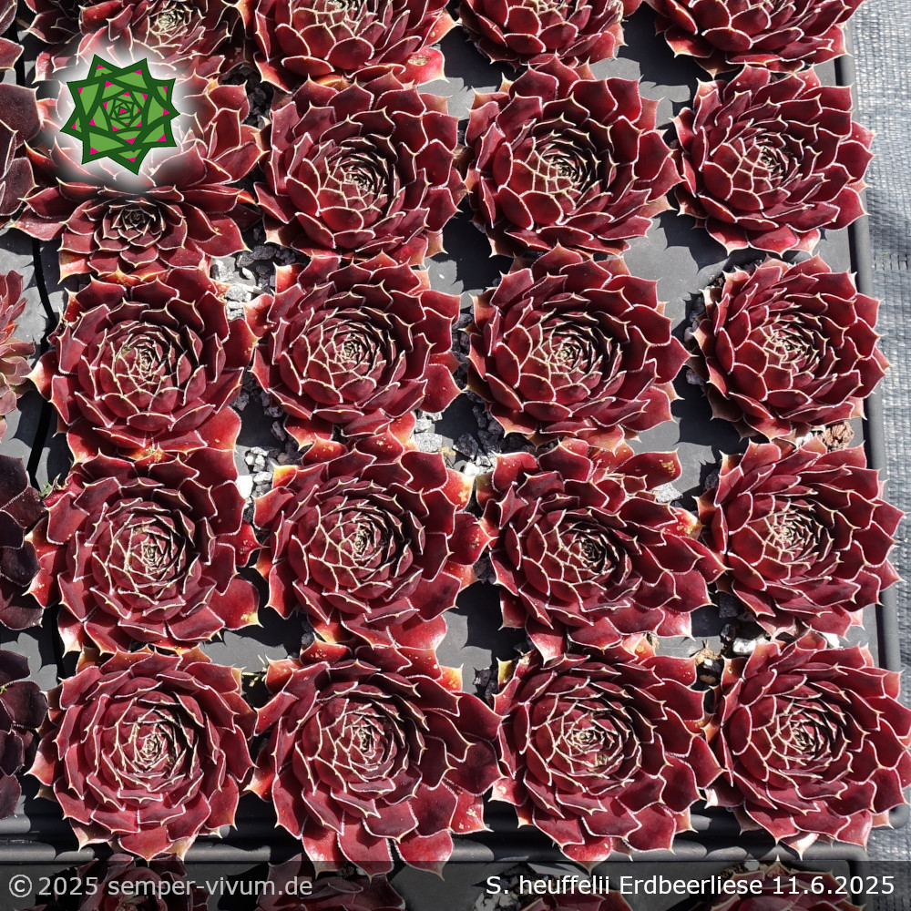 Diese liebenswürdige Auslese haben wir vor neun Jahren aus einer großen Kiste mit hunderten von Zufallssämlingen selektiert. Durch die leuchtend erdbeerrote Farbe hat der Donarsbart schon darin großes Aufsehen erregt. Er formt größere Rosetten mit auffallend spitzen und stark bewimperten Laub. Dadurch erhalten die größeren Rosetten in voller Sonnenbestrahlung einen silbrigen Glanz. Exklusiv bei semper-vivum.de!