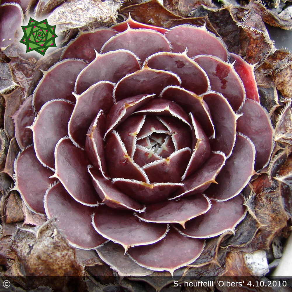 Es ist ein Juwel mit recht großen, auffallend rund geformten Rosetten. Der Couleur variiert je nach Jahreszeit von Altrosa bis pflaumenfarbenem Violett. Diese belgische Züchtung wurde bereits vor 16 Jahren benannt und ist heute noch so gut wie unbekannt. Er gehört zu unseren Favoriten.