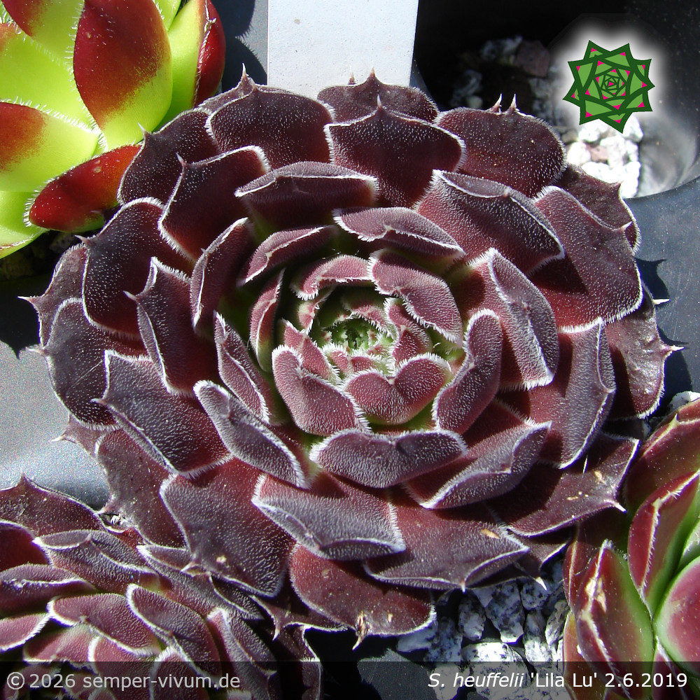 Eine bezaubernde Auslese mit samtenen Blättern in violetter Farbe. Bei Sonnenschein zeigt dieser Donarsbart einen zauberhaften silbrigen Glanz, der sich auf einem Foto kaum festhalten lässt. Wir haben ihn vor über 10 Jahren aus vielen Sämlingen der Sorte 'Eleta' ausgelesen. Er formt eher wenig Nachwuchs, daher können wir nur wenige Pflanzen anbieten. Exklusiv bei semper-vivum.de!