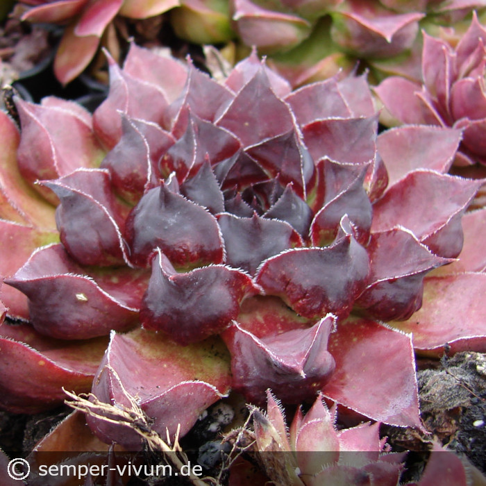 Eine britische Sorte, die bereits Anfang der 60er Jahre eingeführt wurde. Sie formt größere Rosetten, die während des Jahres violettpurpurne bis hell olivgrüne Farben zeigen. Der Züchter schreibt: "Large, open and lax rosettes with succulent leaves based blue green and mottled greyed purple becoming solid purple on the extended point. During the winter the colour fades and the plant looses its distinctiveness of summer." Dieser Kultivar formt manchmal den Sport 'Happy Phantom'. Er besitzt eine außergewöhnliche Form mit stark sukkulenten Blättern. Sehr beliebt und gesucht!