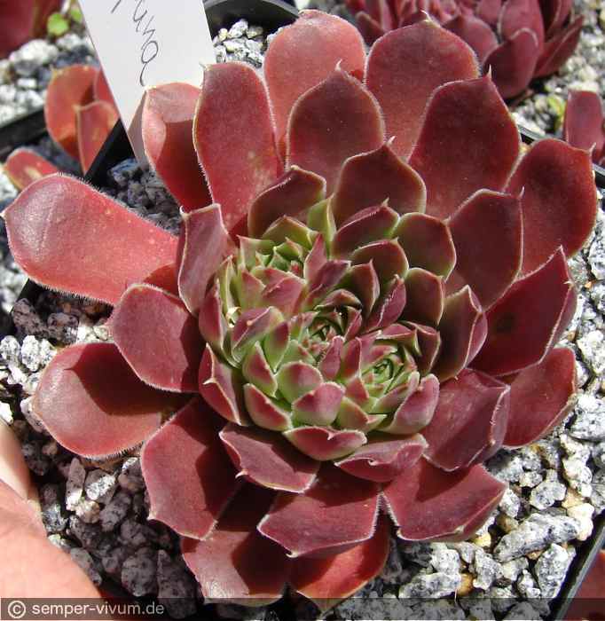 Die Rosetten erstrahlen in violetten bis purpurfarbenen Tönen. 'Coropuna' stammt aus Deutschland und wurde im Jahre 2004 eingeführt. Diese Sorte wurde nach dem höchsten Vulkan in Peru benannt.