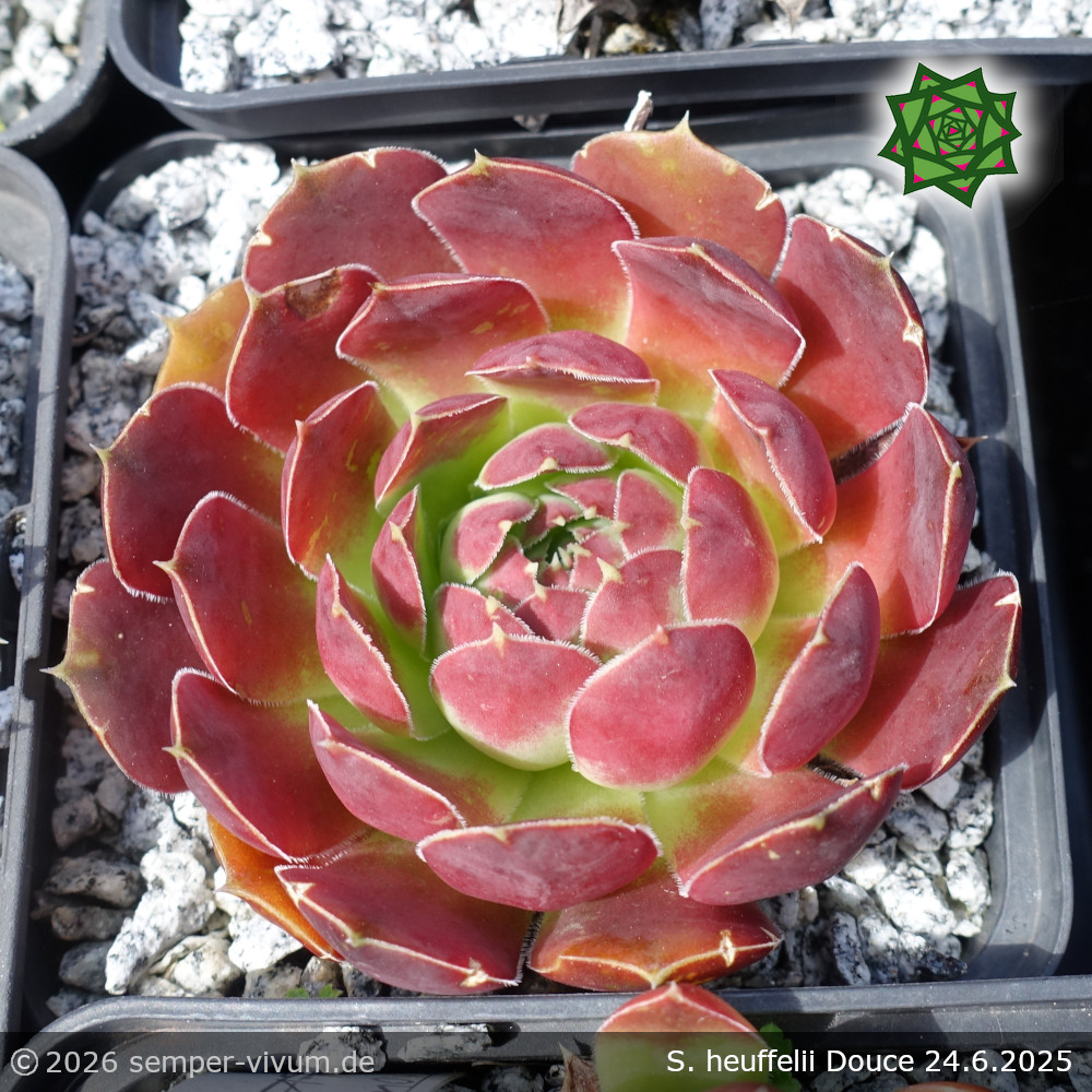 Eine eher kleinere Sorte die sehr gut sprosst und innerhalb weniger Jahre ansehnliche, dichte Polster bilden. In manchen Jahren legt sich im Juni eine leuchtende Färbung von Orange und Pink über die Blätter.