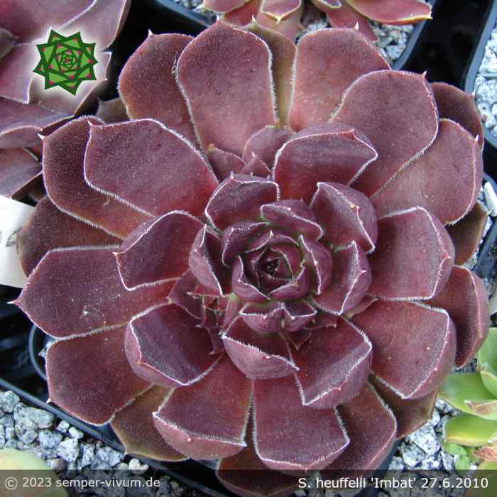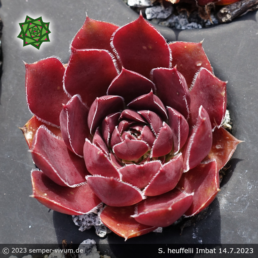 Eine recht sukkulente, neuere Auslese aus Deutschland: Große Rosetten in verschiedenen Purpur Tönen, später in Violett mit zeitweise bläulichem Ton. Sie gehört zu unseren Favoriten. Leider eher wenig Nachwuchs, daher selten im Angebot.