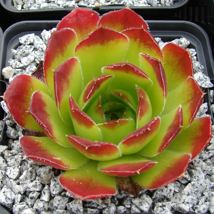 Der passende Name wurde von Günter Dillmann zu Recht ausgewählt: Die grasgrünen Rosetten glänzen während des ganzen Jahres und zeigen in den Frühlingsmonaten rote Blattspitzen und Ränder.