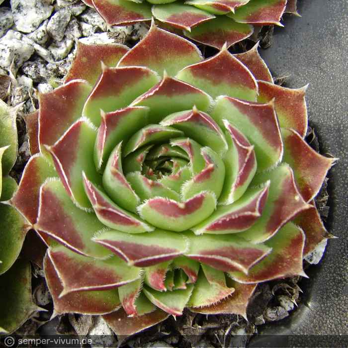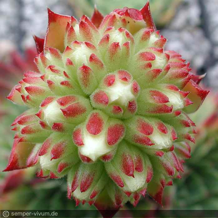 Eine bulgarische Lokalform die dichte Tuffs aus apfelgrünen Rosetten form. Eine Abbildung zeigt den knospigen, kugeligen Blütenstand.