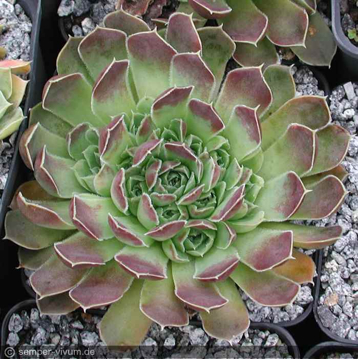 Eine kontrastreiche Form aus Serbien mit frischgrünen, silbrig geränderten Blättern und braunen Spitzen. Sie erhalten starke Pflanzen!