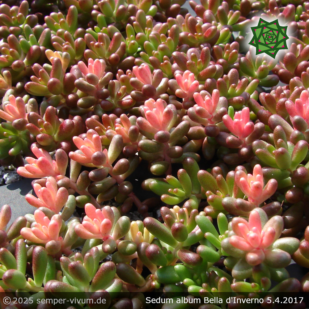 Sie erhalten eine neue Sorte aus Italien - fast identisch mit S. album clusianum. Die Triebspitzen sind aber noch heller ausgefärbt. Je sonniger der Standort, desto farbintensiver und kompakter präsentieren sich die kugeligen Blätter.