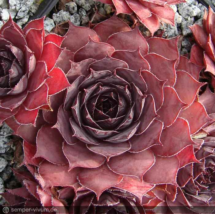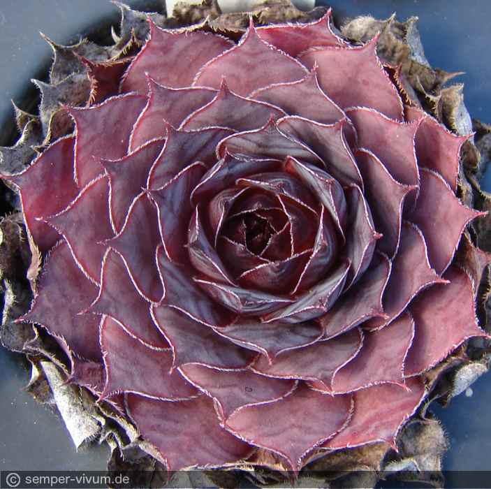 Ein Sämling von 'Red Shadows', den wir 2011 einen Namen gaben. Es gibt bereits Sorten mit ähnlicher Färbung, doch gerade im zeitigen Frühjahr ist unsere Auslese von vergleichbaren Sorten wegen der eher kugeligen Rosetten zu unterscheiden. Zudem geben dem 'Dornröschen' die abrupt aufgesetzten Blattspitzen einen reizenden Auftritt und letztendlich auch den passenden Namen.