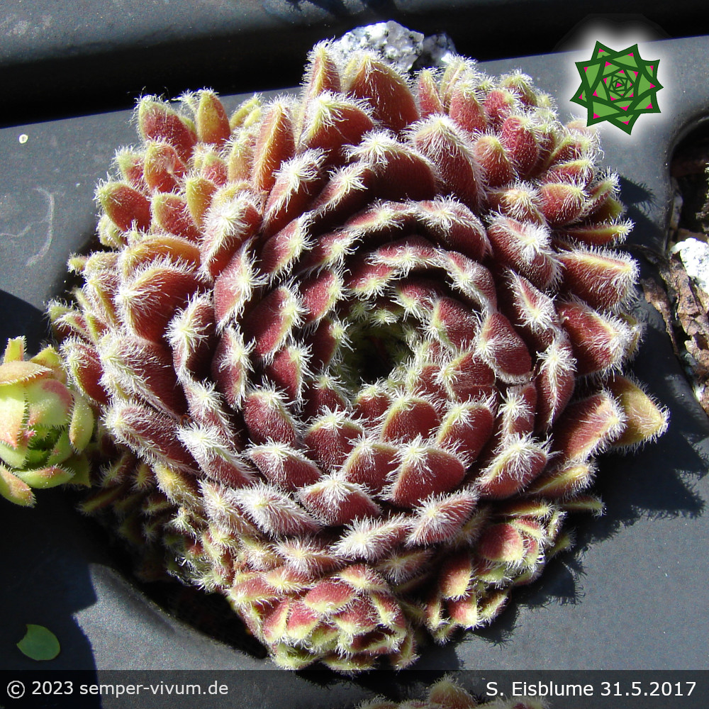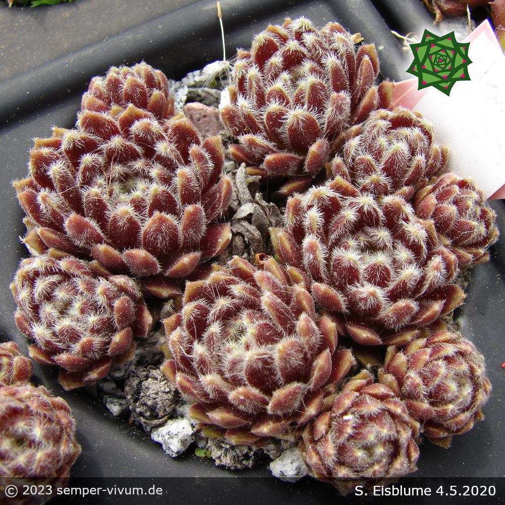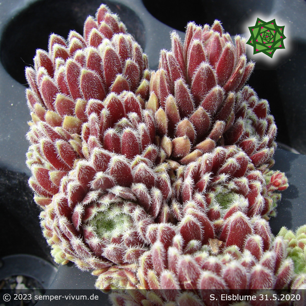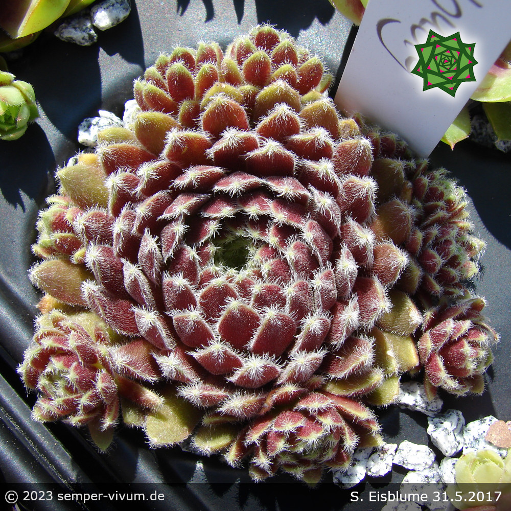 Ein Zufallssämling mit eher kleineren Rosetten von ca. zwei bis vier Zentimetern, die ein kompaktes Polster formen. Die himbeerosafarbenen Blätter und vor allem auch deren Spitzen sind während des Jahres unterschiedlich stark behaart und die ganze Pflanze erinnert dadurch im Wonnemonat Mai zeitweise an die relativ empfindliche Pacific-Sorte 'Pacfic Teddy' aus den USA.