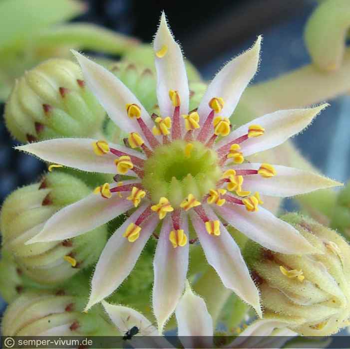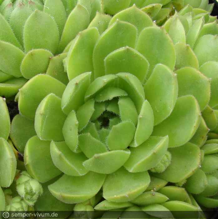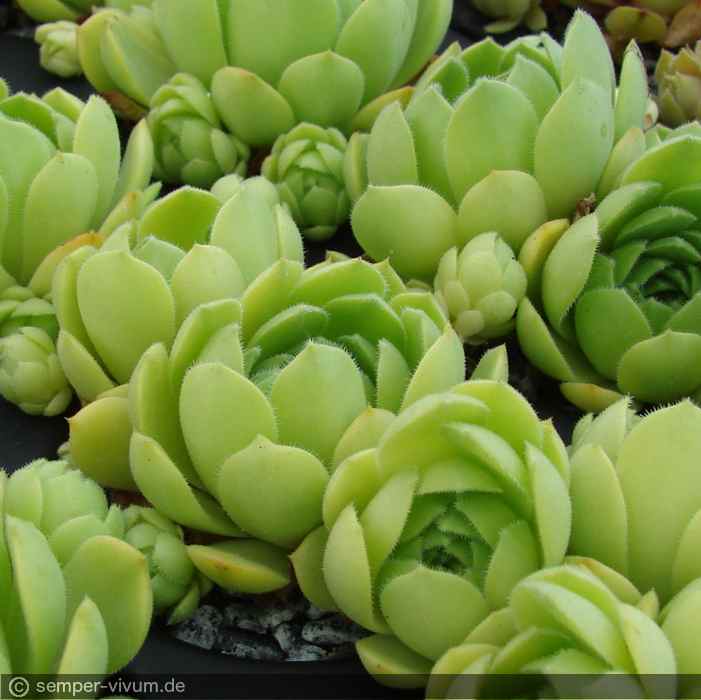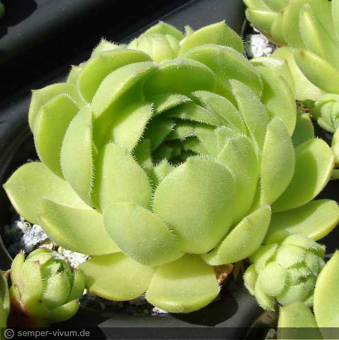 Dieser fesche Kermit formt richtig kugelige Rosetten mit einem Durchmesser von 4 bis 5 Zentimetern. Die Blätter sind recht sukkulent, leicht behaart und ganzjährig in grüner Farbe – manchmal auch mit gelblichem Ton. Es ist ein Zufallssämling aus unserer Sammlung und wird vielleicht auch bald Ihren Garten schmücken.