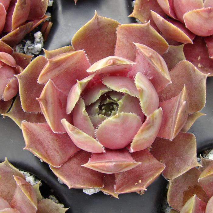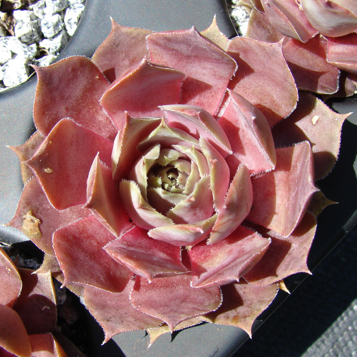 Dieser Stern aus der "Andinn-Reihe" ist unser Liebling dieser Truppe. Die tolle Form und auch die sensationelle Färbung fallen immer wieder aus der Reihe! Sie ähnelt im Sommer der beliebten Sorte 'Violaceum', ist aber etwas kleiner. Diese Hybride wurde zu Ehren von Peter Dieckmann, der Gründer der Sempervivumliste benannt.