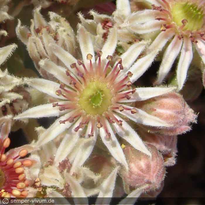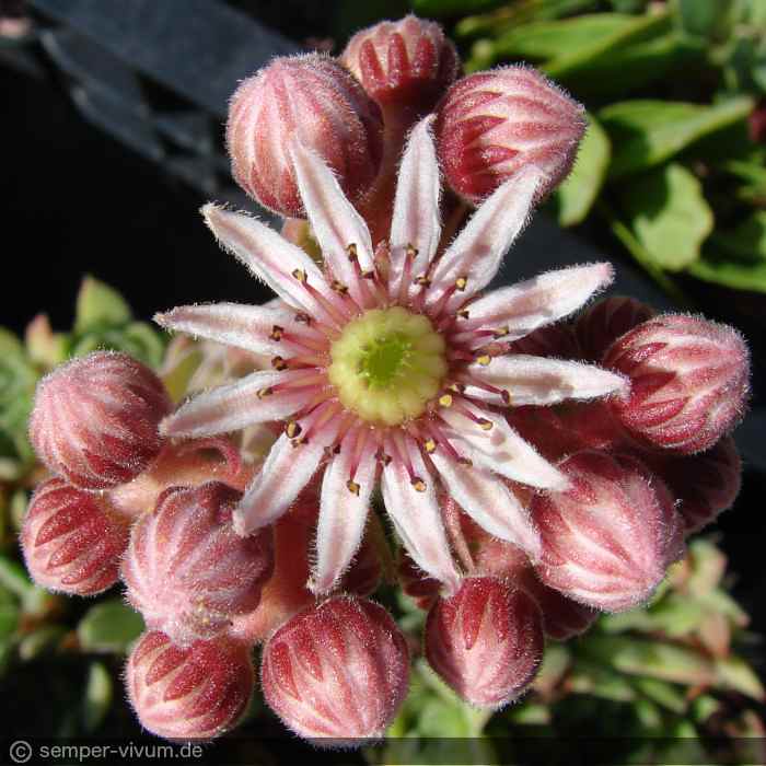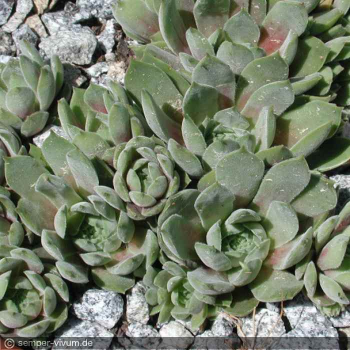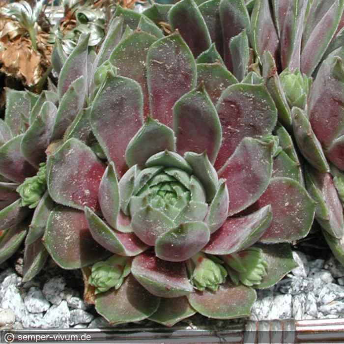 Die Sorte 'Blue Moon' wurde in den 70er Jahren von Helen E. Payne eingeführt: Mittelgroße, samtige Rosetten in blaugrünem Pastell. Besonders schön im Frühling, wenn sich die Blattbasis rosa färbt.