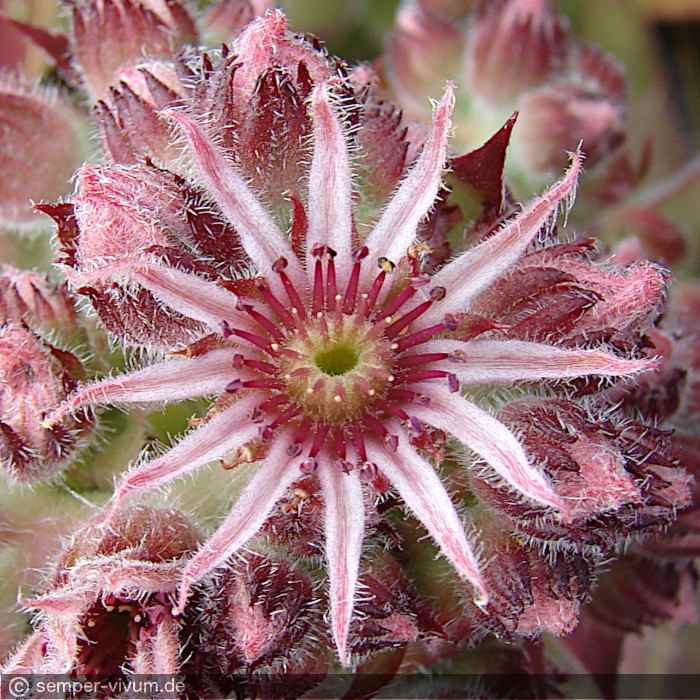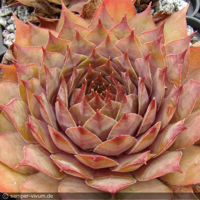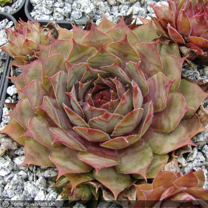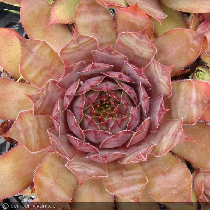 Eine neuere Auslese mit sehr großen, sternförmigen Rosetten. Die Färbung besteht aus Mischtönen in Violett und Terracotta, während der kalten Jahreszeit auch mit Rosa und Olivgrün.
