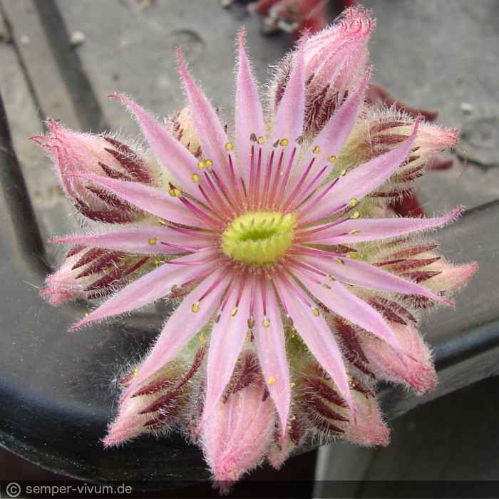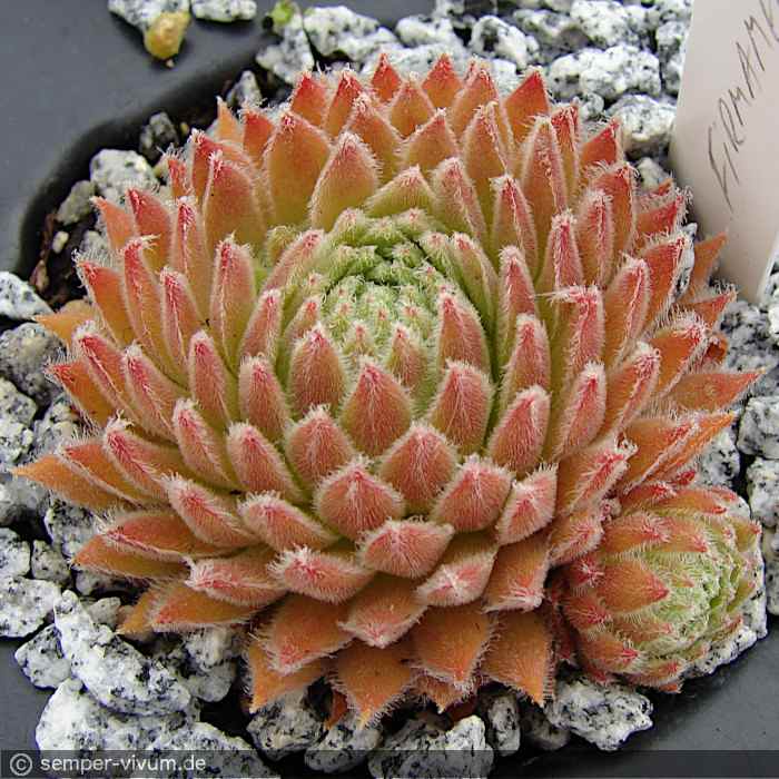 Ein neuer Favorit in unserer Sammlung. Die eher kleineren Rosetten besitzen eine auffallend igelige Form. Die recht dünnen, jadegrünen Blätter zeigen zum Frühjahr eine rosafarbene Tönung, die sich später in orange verwandelt. Bislang nahezu unbekannt!