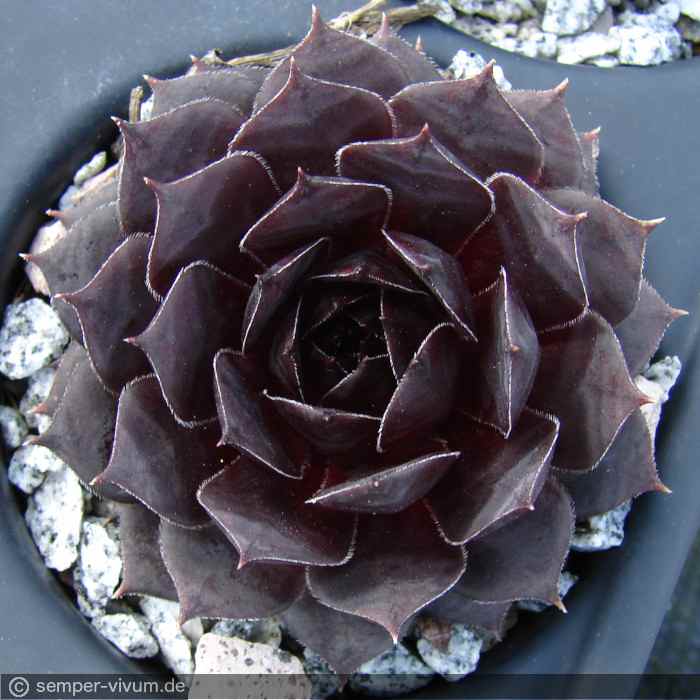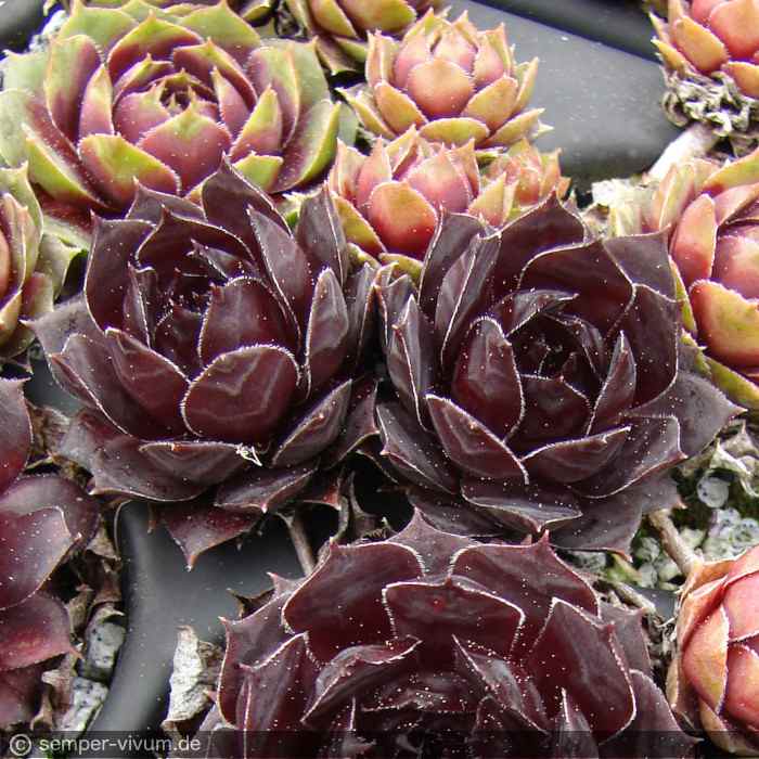Eine weitere Züchtung von Sue Thomas mit recht großen Rosetten. Sie gehört zu den dunkelsten der "schwarzen" Sorten.