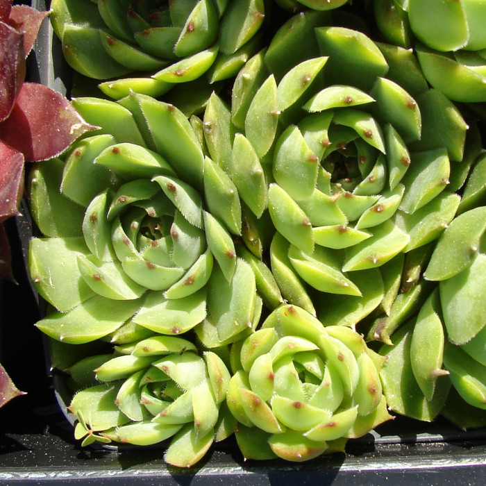 Das Mattgrün der Rosette besitzt eine leichte bläuliche Note während der Hauptvegetationszeit und stellt einen weiteren schönen Gegenkontrast zu den mehrheitlichen rötlich betonten Semperviven in den Auspflanzungen dar. Prasem, ein weiterer Edelstein unserer Steingärten, ist eine äußerst seltene Quarzvariante von der griechischen Insel Serifos und ist nur dort zu finden. Die Fundstelle steht unter strengem Naturschutz. Diese mittelgroße, anfänglich dicht geschlossene Auslese, verfügt über eine robuste Vitalität und bildet kompakte Gruppen. Derzeit exklusiv bei semper-vivum.de!