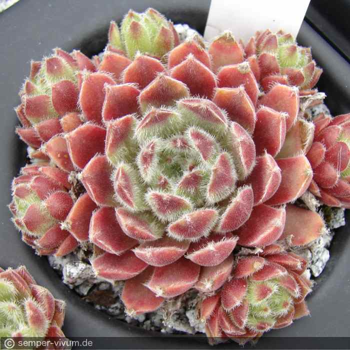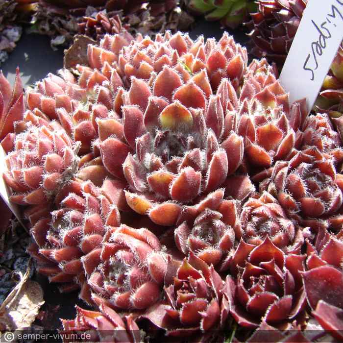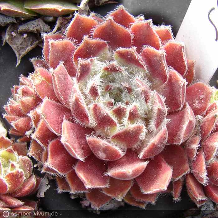 Kleinere bis mittelgroße Rosetten mit rosa Farbnuancen und auffallend dichter, weißer Bewimperung zeichnen diese schicke Sorte aus. Das Zentrum wirkt während des Frühjahrs wie mit Watte behängt. Besonders schön bei Sonnenschein!