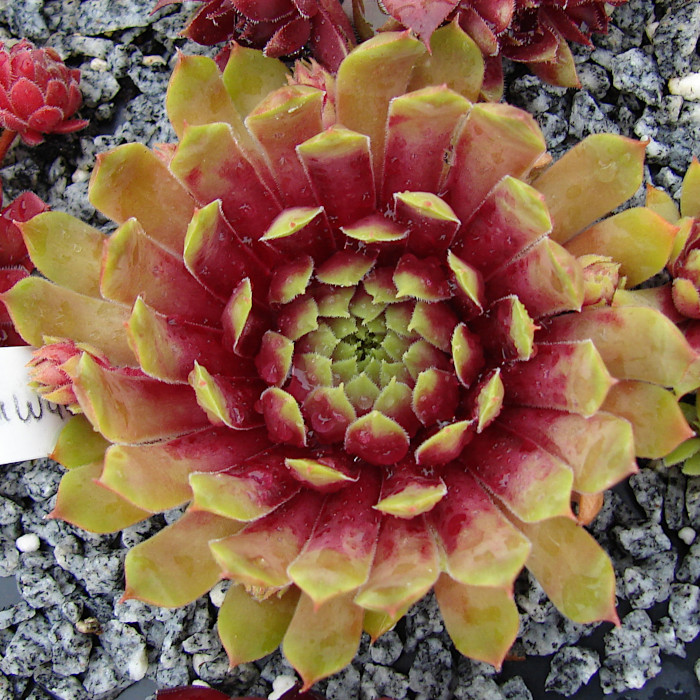 Ein neuer Stern in unserem Sortiment mit zauberhafter Frühjahsfärbung in leuchtendem Pink und gelblichem Grün. Die aussergewöhnlich schmalen Blätter formen bis zu zehn Zentimeter große Rosetten. Auch im Sommer noch hübsch anzusehen. Auffallend immer die langen Spitzen!