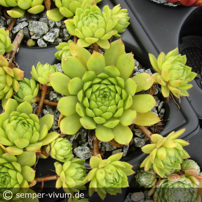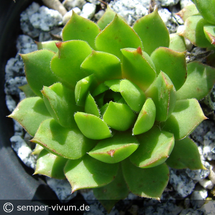 S. x rupicolum ist eine Hybride von S. montanum mit S. wulfenii, die natürlicherweise vorkommt. Im Aussehen zumeist wie eine S. wulfenii mit behaartem Laub. Dieser Klon formt eher schmale, grasgrüne Rosetten mit längeren Ausläufern, an denen der Nachwuchs gedeiht. Er wurde an einem Osthang bei Livigno in der Höhe von 2297m ü.NN. gefunden und bei uns für Sie vermehrt. Der Ort befindet sich in Italien und gehört zum Forcola di Livigno. Dieser Pass verbindet die italienische Zollfreizone von Livigno mit dem Valle di Poschiavo im schweizerischen Kanton Graubünden.