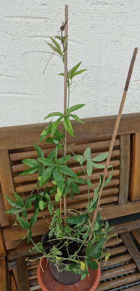 Die Passionsblume P. caerulea 'White Lightening' ist eine frostharte Sorte und toleriert Temperaturen bis ca. -15°C. Die Blüten messen einen Durchmesser von bis zu 6 cm. Sie erhalten die abgebildete Jungpflanze im 17 cm Rundtopf. Es ist ein Einzelstück, das wir aus Platzgründen abgeben. Wir empfehlen das Wurzelsystem von frisch gepflanzten Pflanzen im Freiland vor allem im ersten Winter zu schützen, damit sie die kalte Jahreszeit überstehen. Die Pflanze ist auch als Kübelpflanze für Ihren Balkon oder Terrasse geeignet.